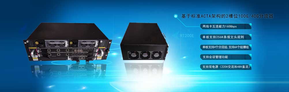 RT200設(shè)備是一款支持網(wǎng)絡(luò)行為審計系統(tǒng)、網(wǎng)絡(luò)內(nèi)容審計系統(tǒng)和入侵檢測系統(tǒng)的高速流量預處理平臺。